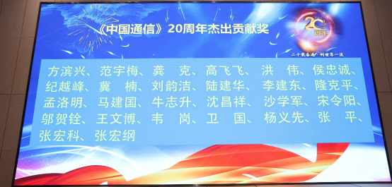 20年来,在工业和信息化部及中国科学技术协会的领导下,在林金泉、周德强、陈肇雄、刘烈宏、张云明等历任中国通信学会理事长的重视和关怀下,在陈俊亮院士、陆建华院士两任主编以及各届编委的努力和支持下,《中国通信》逐步发展成为具有学术性,权威性和广泛影响力的期刊。二十载,激流奋楫。《中国通信》不仅是一本期刊,已经成为新成果新发现展示的主要载体,学术交流互动的重要平台,见证了我国信息通信行业从跟随到引领的波澜壮阔的发展。经过20年的发展,《中国通信》的质量和影响力持续提升,期刊SCI影响因子目前已步入全球同类期刊第二方阵。《中国通信》将在科技前沿选题、创新期刊栏目、提升专业水准和出版服务能力等方面,持续用力、精准发力,再接再厉,争取早日跻身国际一流期刊方阵。