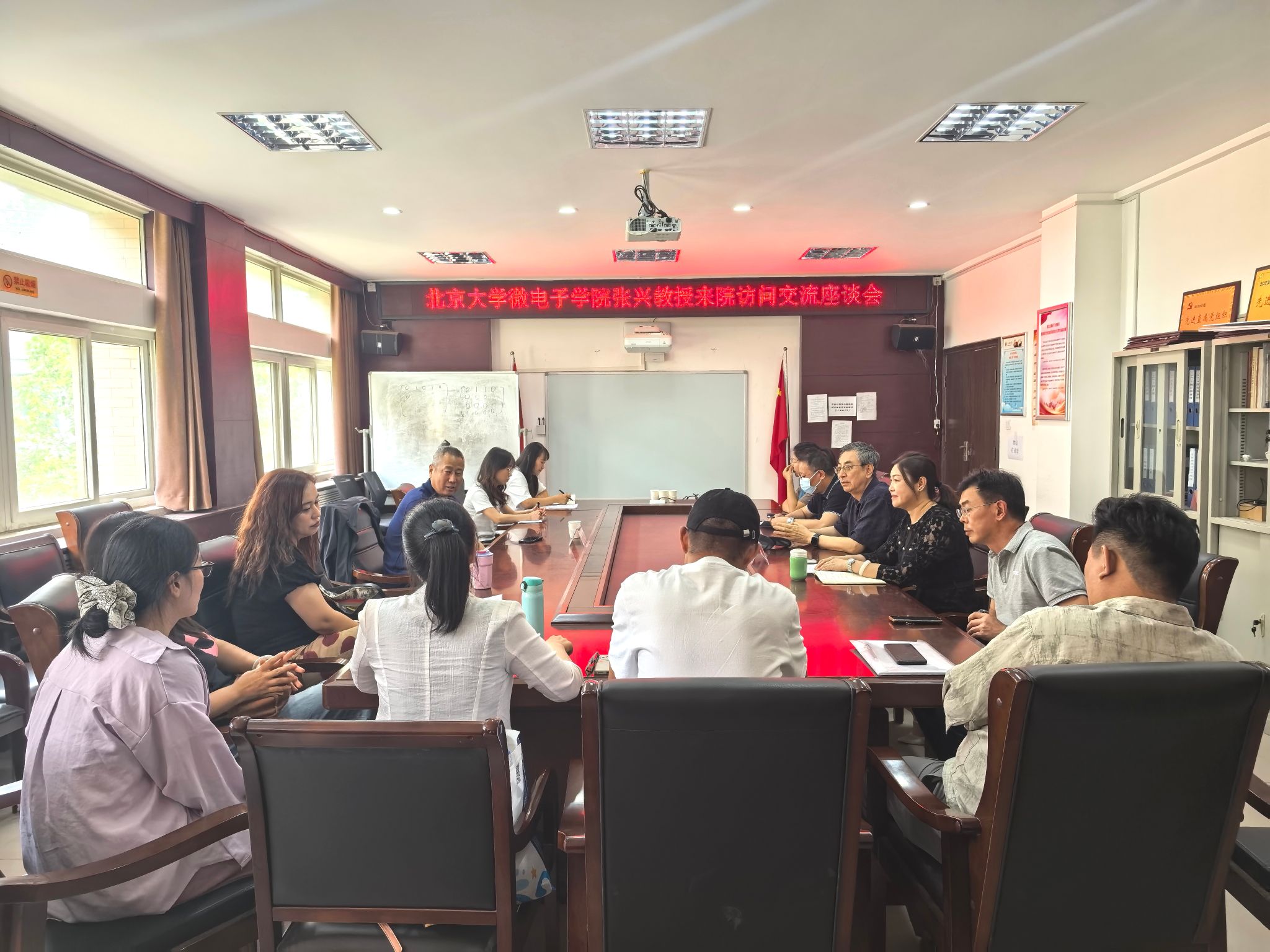 5月6日下午,北京大学微电子公司张兴教授应邀到公司交流座谈,双方就团队建设、团队培养、课程优化及校企合作等议题展开深入交流。学术副董事长张纪峰,学术副董事长、经理马建国,公司领导班子及全体教职工参会。会议由马建国主持。
